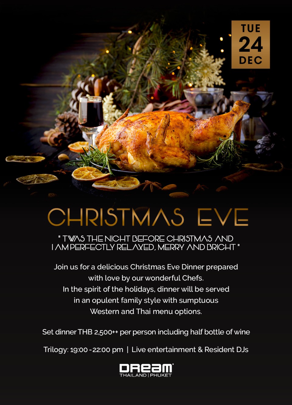 Join us for a delicious Christmas Eve Dinner prepared with love by our wonderful Chefs. In the spirit of the holidays, dinner will be served in an opulent family style with sumptuous Western and Thai menu options.