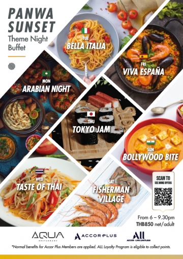 Pullman Phuket Panwa Beach Resort proudly presents our fine dining offers throughout the week! Panwa Sunset Theme Night with selected options is available From Monday to Sunday, 6 pm – 9.30 pm.