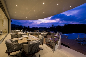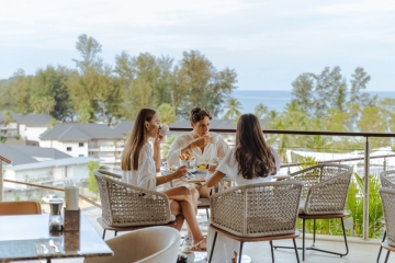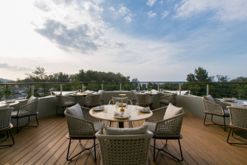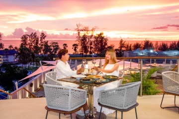 “Ocean‐view rooftop on vibrant Bangtao Beach, perfect for romantic dinners, lively nights with friends, business lunches, and private events.”