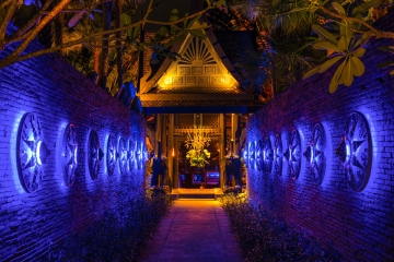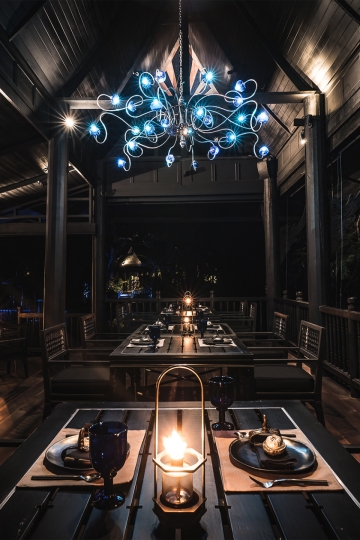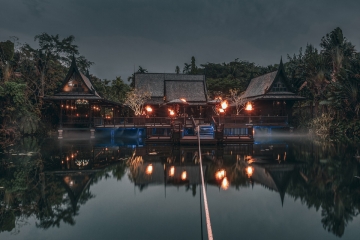 A modern Thai art masterpiece in a floating Thai mansion offers unique Thai favourites and Southern Thai flavours. An unmatched arrival experience awaits with a raftsman.