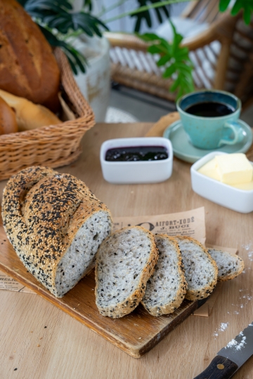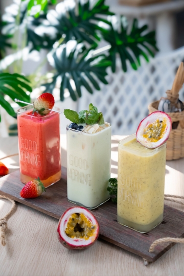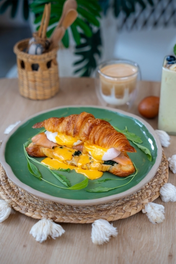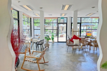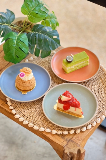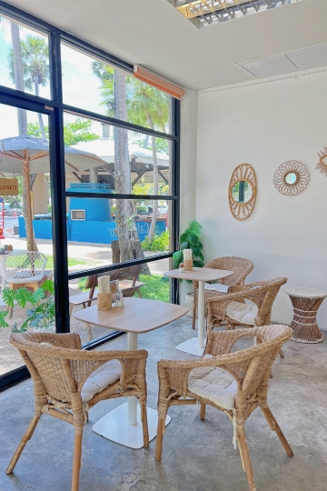 A cozy beachside bakery café with a European touch—serving all-day breakfast, salads, smoothie bowls, cakes, pastries, snacks, ice cream, coffee, healthy drinks & Thai Gourmet Gift Sets.