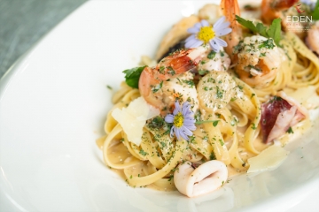 “Eden’s menu features internationally acclaimed grilled meats and seafood with signature sides and sauces, a variety of Thai and German specialities, delicious starters, salads, and soups. All dishes are served in a stylish and atmospheric setting at reasonable prices.”