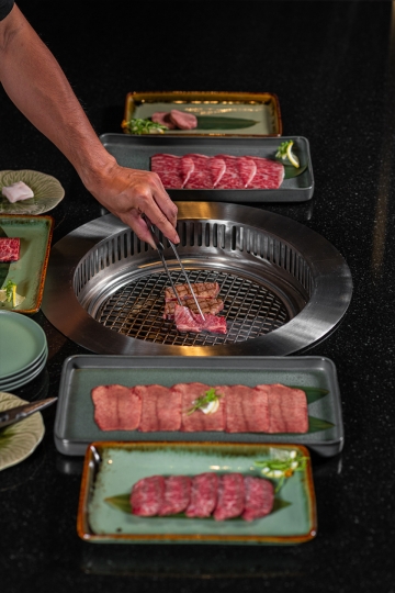 Premium Wagyu cut by hand, with varieties of meat cut alongside, and with Japanese side dishes to complement the Japanese Wagyu. Cooked on a hot charcoal grill by experienced staff.