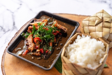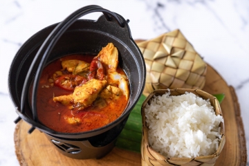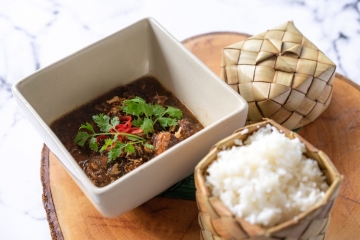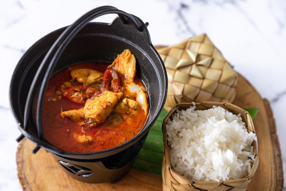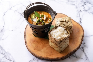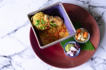 Chang Mai inspired khao soi curry served with a braised chicken drumstick, soft noodles and topped with crispy egg noodles.