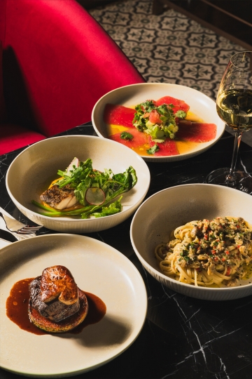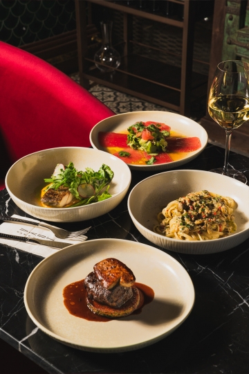 “In revamped JOYA, every detail enthralls the senses. Crystal chandeliers, majestic wood and curated artwork complement the decadent menu that takes you on a journey across Europe. Elegant space perfect for both an exciting night out and intimate conversation over extraordinary beverages.”