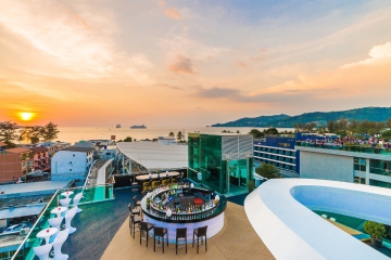 Rooftop bar and restaurant on 6th floor (bar/restaurant) and 7th floor (lounge/jacuzzi), with 360 degree sea & sunset views, featuring signature beverages, Mediterranean & Thai tapas.