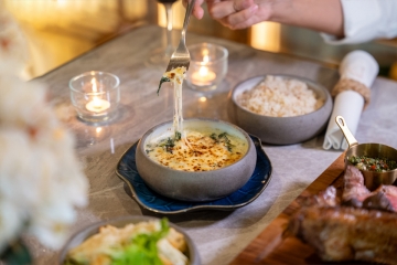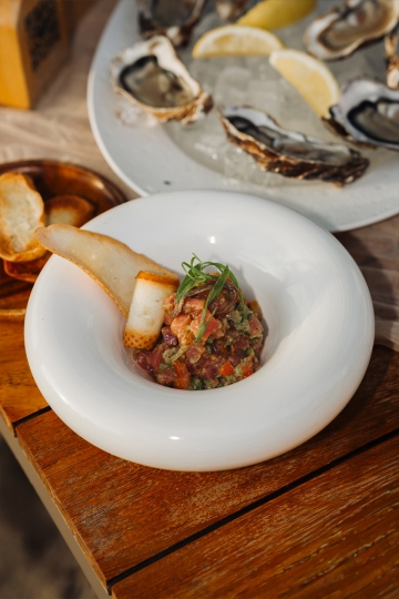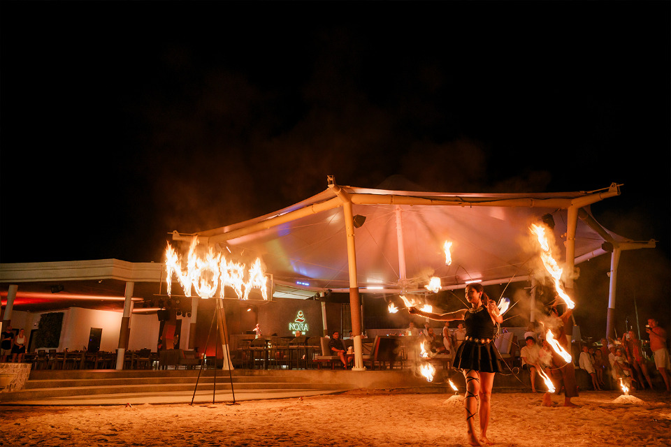 “NORA Beach Club brings a unique concept inspired by the magnetic energy of Ibiza and the serene beauty of Bali. Enjoy fresh seafood, creative beverages and live DJ performances, creating an unparalleled all-day modern beach club experience set against the vibrant backdrop of Bang Tao Beach, Phuket.”
