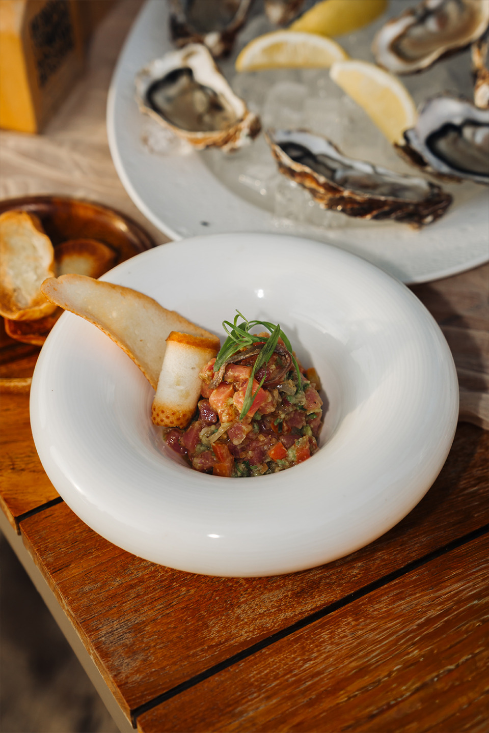 Relax on sunken beach seats, enjoy fresh Andaman cuisine, handcrafted & premium beverages plus fine caviar, with sunset-to-night DJ vibes.