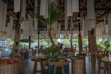 “Open Kitchen redefines dining in Phuket with a multi-faceted food experience, blending a restaurant, café and green yard area for picnics. Our farm-to-fork approach showcases fresh produce and deli itemssourced directly from our farms. Amidst the tranquility of lush greenery and a lagoon,guests can relish in flavourful meals, sustainable grape beverages, and even partake in free yoga classes. A family and pet-friendly haven, we also make Saturdays extra special with a curated drinks selection.”