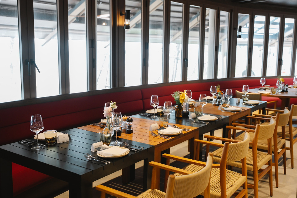 RAVA Beach Club spans 3,500 sqm with over 500 seats. The venue includes Master Grill restaurant, lounge areas, daybeds and dedicated event spaces across multiple zones.