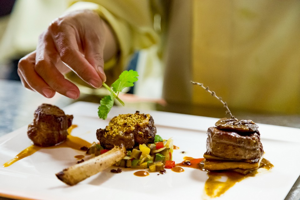 Beef tenderloin wrapped in Parma ham, with truffle oil enhanced mushroom sauce, accompanied by spaetzle