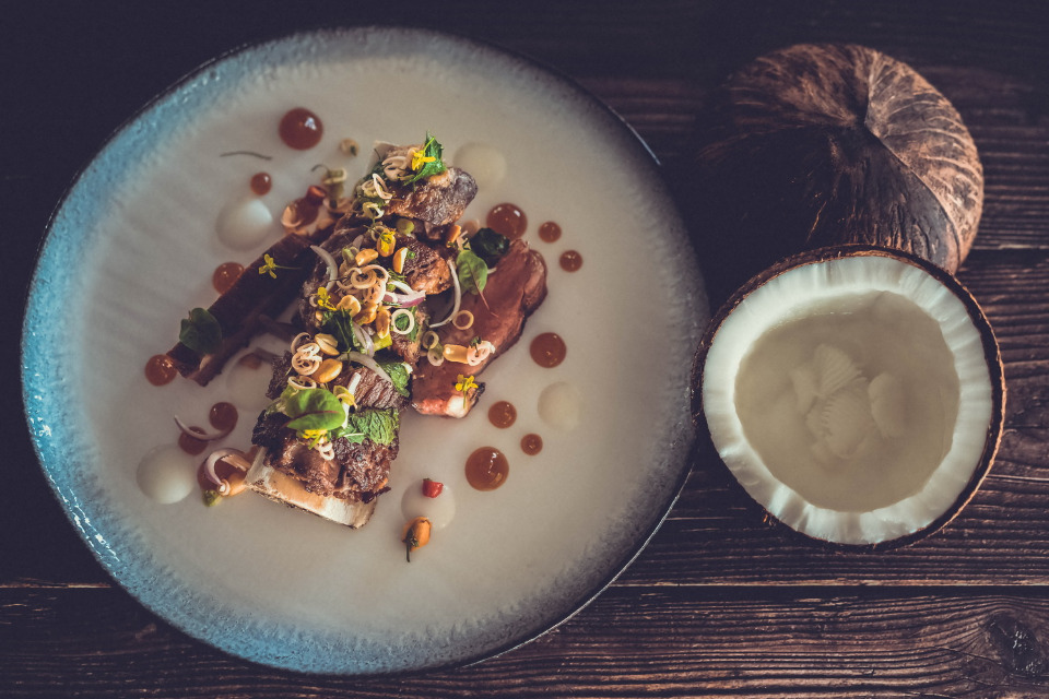 Massaman Neua - Braised of local oxtail, grilled Thai flank, potato espuma, char onions, confit garlic, massaman curry2