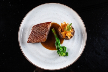 A classic favourite, Tom Kha, is placed on our table to accompany the salad. The soup is served in its own coconut shell, which makes an Instagram-worthy presentation. It’s a dish that pays homage to Thailand’s love of coconuts; inside there is coconut, young coconut flesh, coconut shoots, coconut milk and shrimp paste plus a large Hokkaido scallop, fresh vegetables and a crispy mushroom stick for dipping into the soup. The Tom Kha dish is rich and creamy, and a nice twist on the traditional Thai recipe.