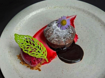 But alas, end it did, meaning we were onto dessert, often my favourite course. I have to admit I am a bona fide chocoholic so, anytime anything chocolate related is on the menu, I am guaranteed to order it. And, true to form, I did on this occasion, with the Chocolate Lava Cake ordered almost before Palm could ask me! It did not disappoint, a truly decadent molten lava spilling from the moist cake as my spoon cut through it. Delicious! My partner chose the Strawberry Mille-Feuille with Vanilla Bavarois which was a true delight and a perfect end to our meal.
